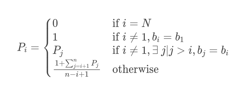 P_j& \text{if } i \neq 1, \exists \text{ } j | j > i, b_j = b_i\\